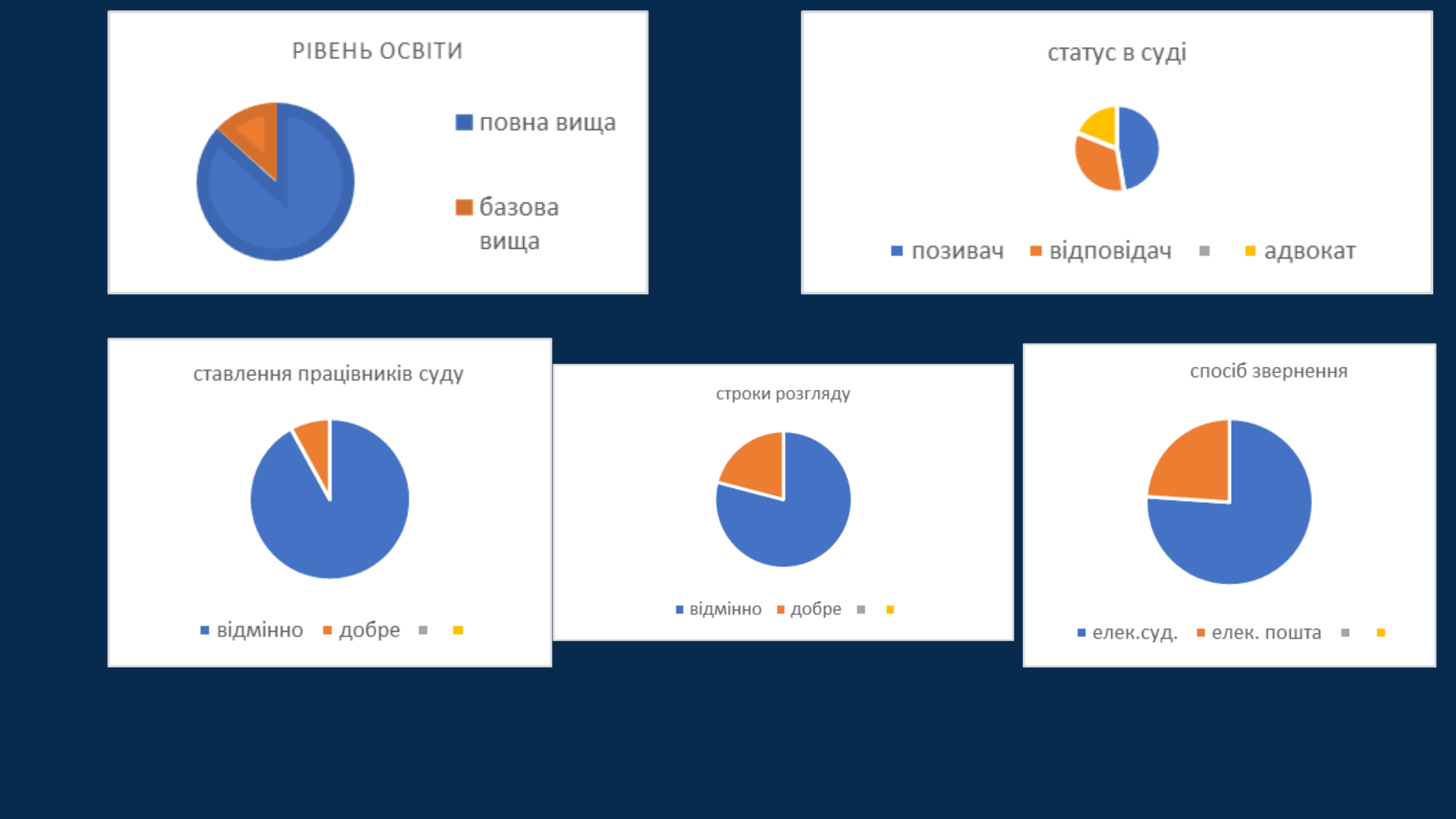Учасниками анкетування були переважно сторони у справах, адвокати, громадяни, які безпосередньо зверталися до суду.