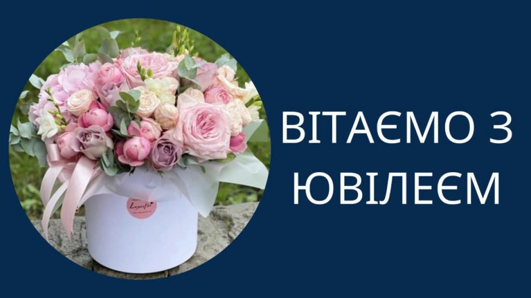У день ювілею бажаємо Вам міцного здоров’я, невичерпної енергії, оптимізму, нових досягнень та впевненості у власних силах. Нехай робота приносить задоволення, а кожен новий проєкт дарує можливість для розвитку. Бажаємо Вам миру, добробуту та гармонії, а також натхнення й хороших подій у житті.