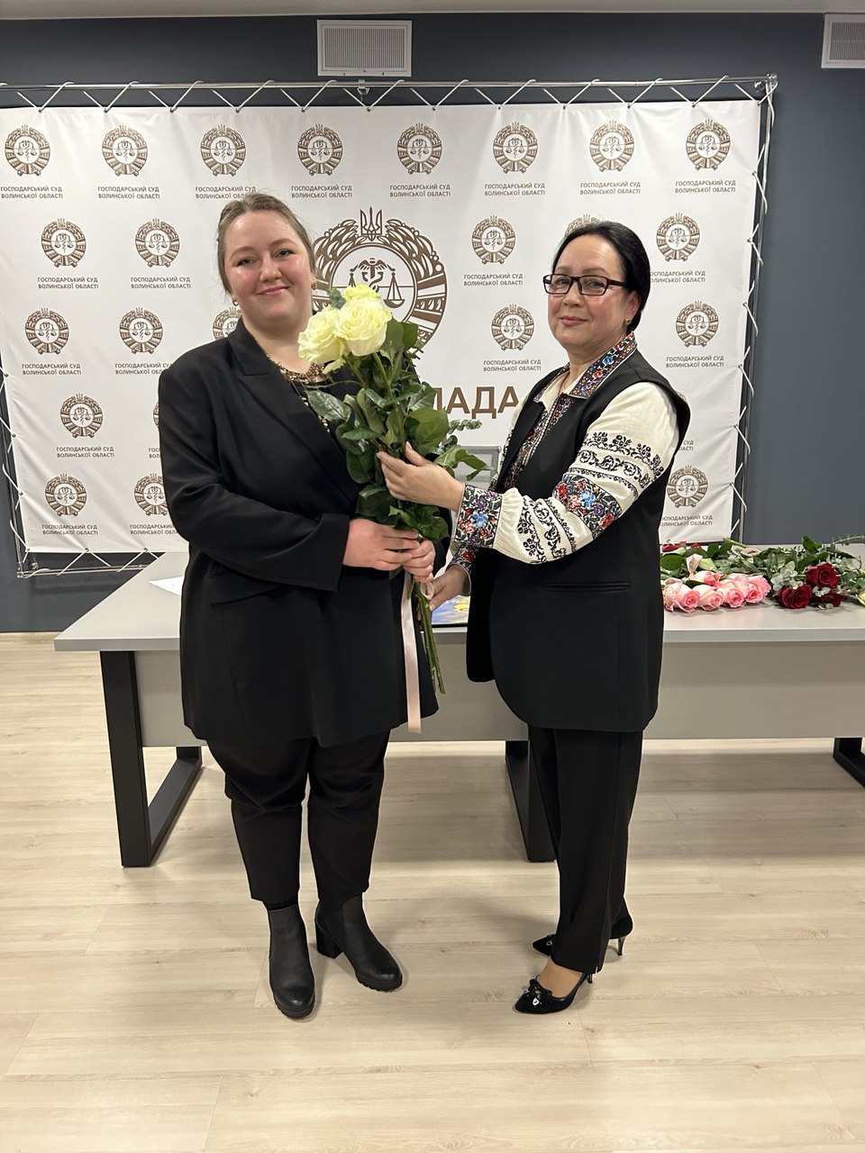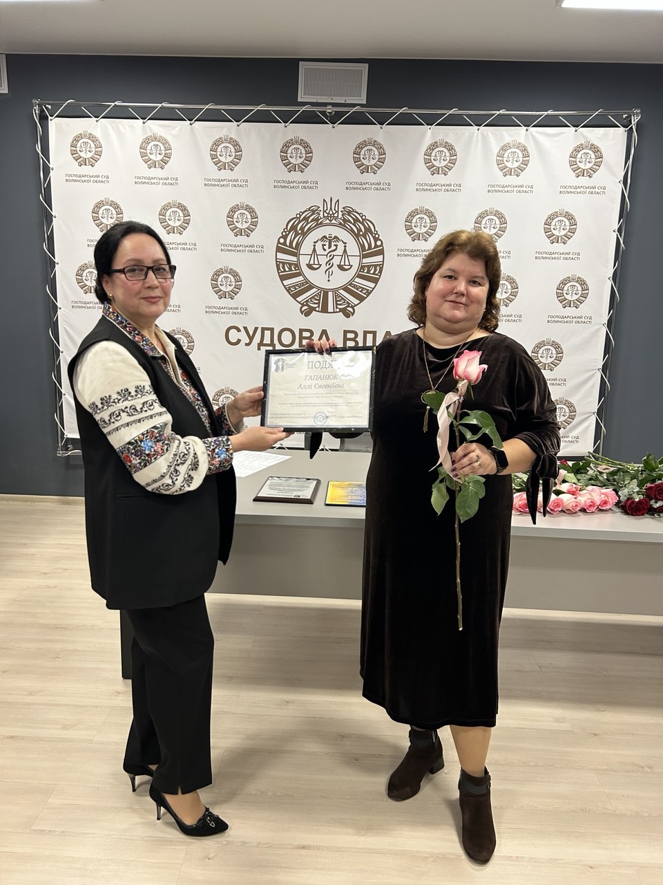 Також з нагоди професійного свята за сумлінну працю та активну громадську позицію в діяльності колективу голова суду відзначила особистою подякою секретарів судового засідання Людмилу МАЧУЛЬСЬКУ та Юлію СОСНОВСЬКУ.