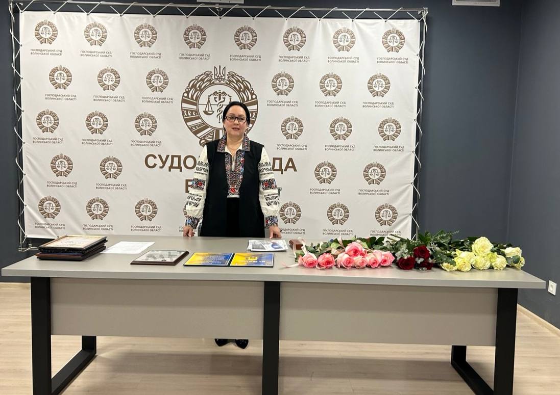 З вітальним словом до присутніх звернулася голова Господарського суду Волинської області Оксана СЛОБОДЯН. У своєму виступі вона щиро подякувала колегам за сумлінну працю, професіоналізм й відданість служінню Закону.
