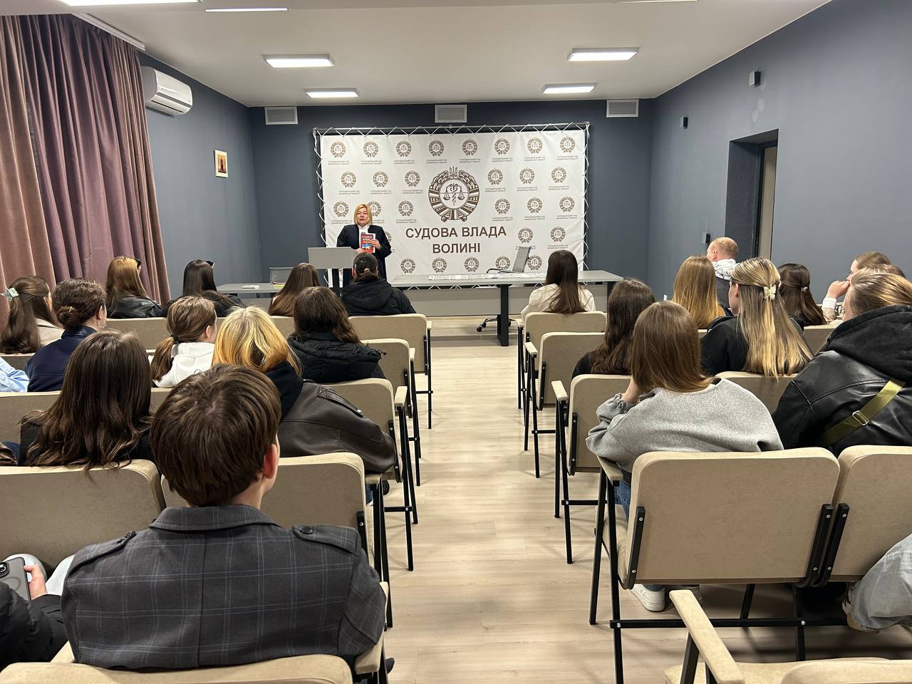 Радо зустрічали майбутніх юристів суддя-спікер Господарського суду Волинської області, кандидат юридичних наук Валентина ДЕМ`ЯК та помічниця судді, кандидат юридичних наук Юлія БОСНЮК.